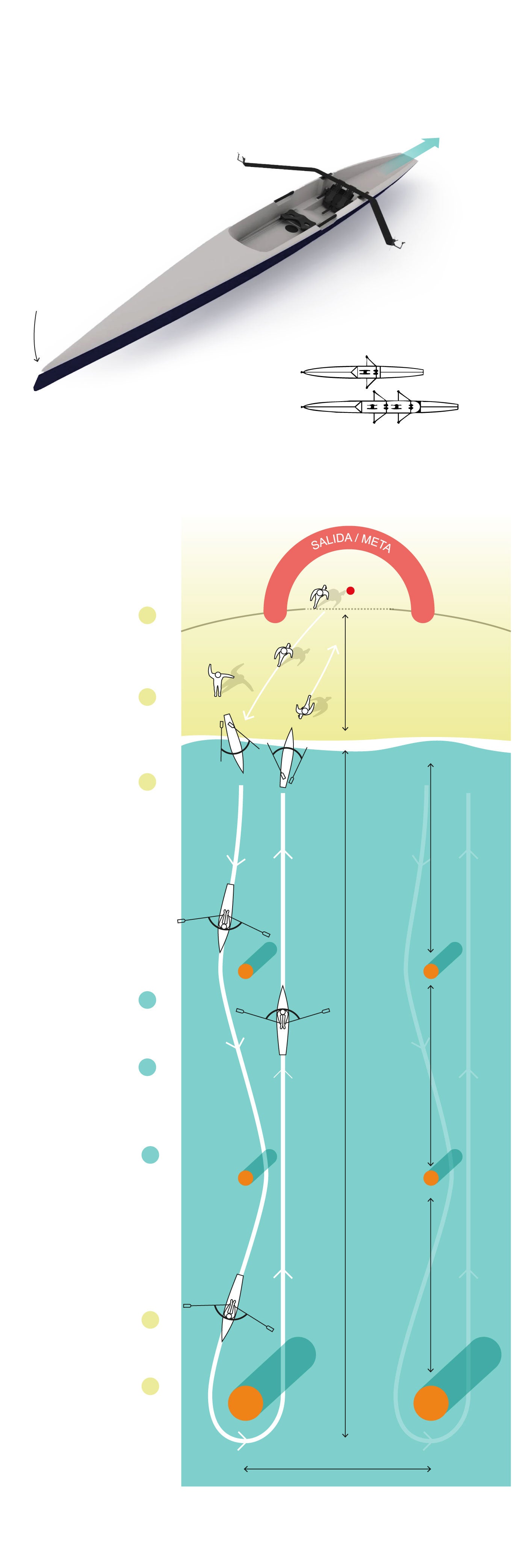 Asistentes: Ayudan al remero a iniciar el recorrido y hacen de guía en las maniobras (el remero va de espaldas a las boyas)