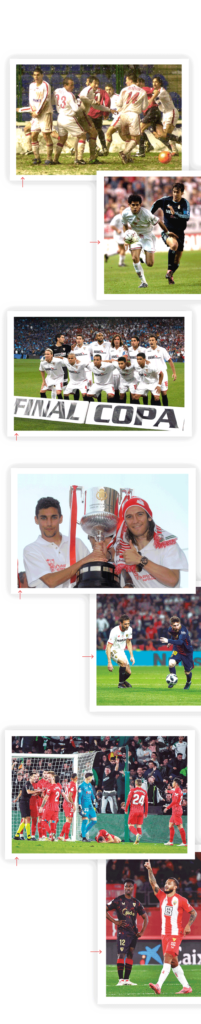 Regresa la Copa del Rey para los clubes de Primera división y se renuevan las ilusiones de una competición que parece destinada o dirigida a que alcancen su final los dos grandes del fútbol español, pero donde una entidad como el Sevilla ha vivido numerosas aventuras de victorias y derrotas, con anécdotas y momentos que han quedado para la historia de una entidad que suma en sus más de 130 años hasta nueve presencias en finales, con cinco entorchados . Cuatro de esas finales y dos de esos títulos se han vivido en los últimos 25 años , siendo años de crecimiento donde Europa le ha otorgado más gloria a los de Nervión, pero estando en las leyendas de las eliminatorias coperas el verdadero camino de crecimiento del Sevilla.Porque el Sevilla de inicios de siglo, incluso antes de su último ascenso a Primera de la mano de Joaquín Caparrós , arrancó con dos eliminaciones a las primeras de cambio, donde sólo importaba o conseguir el ascenso o, posteriormente, la permanencia. En cuanto elevó el nivel de la plantilla, la necesidad de crecer en el segundo torneo nacional -sin pensar aún en Europa- comenzó a ser una obligación. Ahí nació una especie de gran animadversión contra Osasuna, que se mantuvo en la primera década del siglo, con numerosos enfrentamientos entre las partes. En 2003 llegaba el Sevilla de Caparrós a cuartos de final, acariciando sus primeras semifinales en décadas. Tras un empate en Nervión, El Sadar dejaría a los sevillistas con la miel en los labios en el conocido partido de la nieve . Aquel Sevilla se quedó helado y embarrado, clavándose una espina que debía sacar como fuese.Código Desktop Imagen para móvil, amp y app Código móvil Código AMP 2575 Código APP Al año siguiente fue el Real Madrid su adversario, ya sí en semifinales. Tras una dura derrota en el Bernabéu (2-0) , el Sánchez-Pizjuán mostró su mejor cara. La que se ha hecho famosa con el paso de las temporadas en este siglo. Y antes del minuto de juego anotaba Antonio López para locura del sevillismo. Se escapó aquel acceso a la primera final en casi 60 años, con la polémica charla en el túnel de vestuarios entre Jorge Valdano, representante del Real Madrid, e Iturralde González , colegiado de aquel partido de vuelta. El Sevilla se quedaba en la orilla. Tenía que seguir peleando. Precisamente ante Osasuna regresaba a la competición europea en la última jornada de la 2003-04 , con venganza para los navarros en la Copa del año siguiente, otra vez en cuartos de final y jugando en Pamplona el partido de vuelta.Juande Ramos viviría en carnes propias cómo se las gasta la Copa con los modestos, eliminado ante el Cádiz en octavos a doble partido. Sin embargo, aquel año fue el de la final de la Copa de la UEFA y ese primer entorchado europeo del Sevilla. Un camino comenzaba ahí, por lo que aquella eliminación en el Ramón de Carranza pasó a ser anecdótica. Un paso ‘necesario’.El momento en la Copa estaba por llegar . Porque esa plantilla levantó cinco títulos en 15 meses, siendo uno de ellos una final contra el Getafe donde cerca de 80.000 aficionados del Sevilla se desplazaron a la capital de España para ver a su equipo levantar ese título 59 años después, siendo el anterior en 1948 . Ese Sevilla que comenzaba a crecer colocaba su primera pica del siglo en la Copa del Rey , donde seguiría peleando por más éxitos. Antes del siguiente título en la Copa, caería el Sevilla en cuartos ante el Barcelona por el valor doble de los goles fuera de casa y en unas nuevas semifinales en San Mamés, con aquella arenga de Del Nido Benavente sobre comerse la cola del león y que le salió totalmente en contra. Porque el segundo trofeo del siglo en la Copa sería como esos últimos en la Europa League , dando para varios documentales. Eliminó al intratable Barcelona de Guardiola gracias a Palop; resistió en unas semifinales contra el Getafe gracias a su portero; y superó en la final al Atlético de Reyes y Quique Sánchez Flores después de un cambio de entrenador pocas semanas antes, con Antonio Álvarez a los mandos. El destino le había puesto el título en sus manos.Dos finales y otros disgustosSe entraba en otra década y aquellos logros coperos pasarían a mejor vida, aunque los sevillistas se plantaran en dos nuevas finales, sin éxito final al medirse al Barcelona. Fueron los años de dar un salto nuevamente en Europa y encontrarse con los dos grandes del fútbol español, entre Supercopa nacional y europea, más finales de la Copa, demasiadas veces. Dos semifinales en tres años, cayendo ante Real Madrid y Atlético , siendo la segunda en los primeros meses de Unai Emery , con una plantilla por cambiar. Como le sucediese a Juande en su primer año completo, un rival a priori sencillo -este caso un Racing fuera del fútbol profesional- expulsó a los de Nervión a doble partido, cayendo en la vuelta en el Sánchez-Pizjuán tras vencer en la ida. Ese dolor se disiparía con creces con la tercera Europa League en Turín .Emery pisaría una final de la Copa , tras caer en octavos el año anterior, en su última temporada con el Sevilla. Tres días después de levantar su tercera Europa League consecutiva en Basilea , le llagaba la oportunidad del doblete en el Vicente Calderón contra el Barcelona de Messi, Luis Suárez y Neymar . Pese a quedarse los azulgranas con uno menos en el primer periodo, el Sevilla no fue capaz de ganar aquella final. Se quedaba a las puertas. Al año siguiente, con Sampaoli , se mediría al Real Madrid en octavos, con un contundente 3-0 en el Bernabéu en un penalti señalado por Mateu Lahoz provocado entre dos jugadores blancos ( James y Modric ). El 3-3 de la vuelta fue anecdótico. Había que esperar un año para una nueva final. Y qué final.Con Montella en el banquillo , en el primer año sin Monchi en la dirección deportiva, el equipo alcanzó los cuartos de Champions y la final en la Copa del Rey, pese a su irregular camino