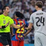Pedri recibió el premio a la mejor asistencia. «Sabíamos que iban a venir con muchas ganas, nosotros también teníamos ganas después del último partido que jugamos contra ellos, yo estaba tieso en los últimos minutos», explicó el canario, que valoró el final de la primera parte: «Vini hace un golazo, le tenemos que parar un poco antes, marcamos nosotros, parece que va a pitar y llega el gol de ellos». Y desveló que Araujo arengó al vestuario: «Ronald nos aporta mucho, la charla que nos ha dado antes del partido nos ha emocionado a todos».